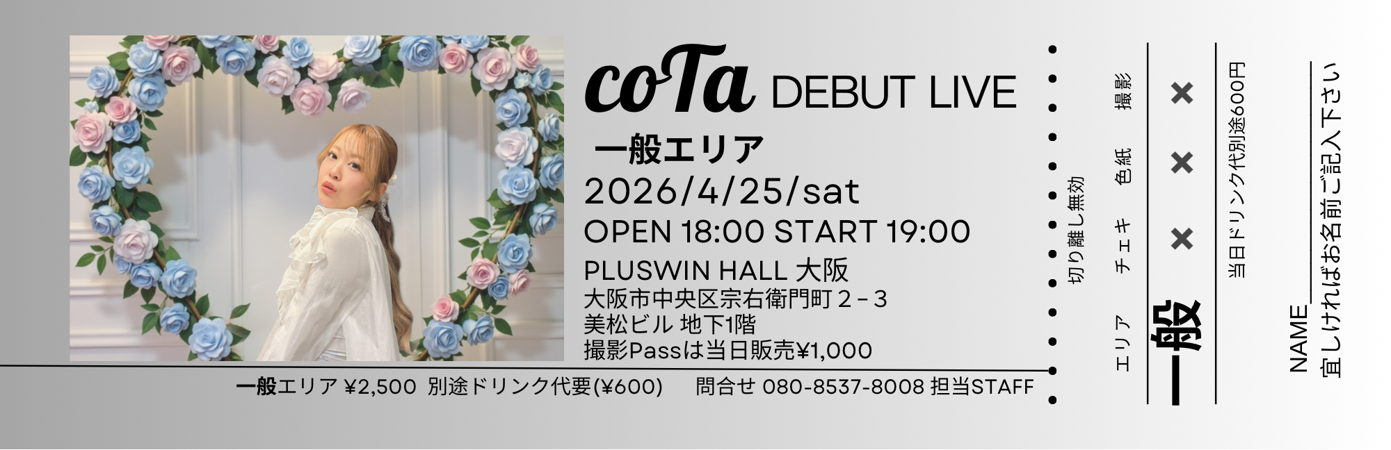 【一般エリア】coTaデビューワンマンライブチケット